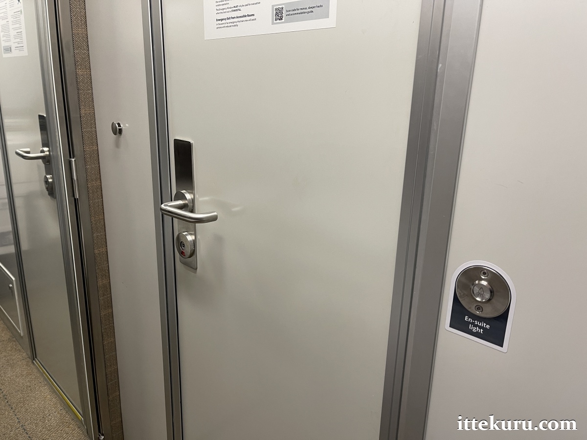 This door would have given me access to the ensuite toilet and shower. Alas, as indicated in their disruption e-mail, the door was locked so I couldn’t even take a look inside.