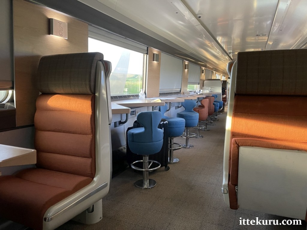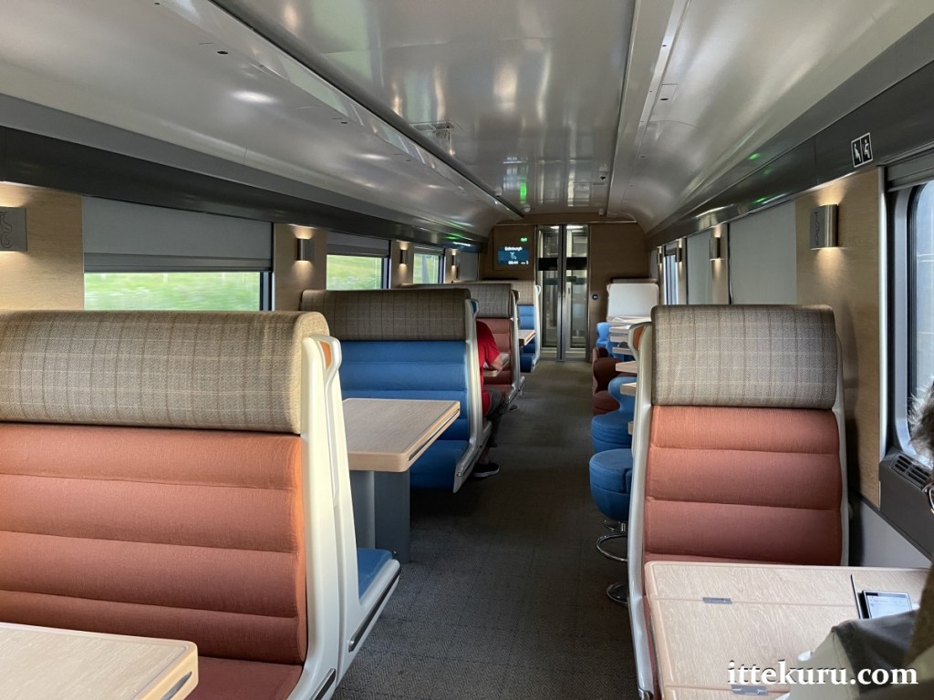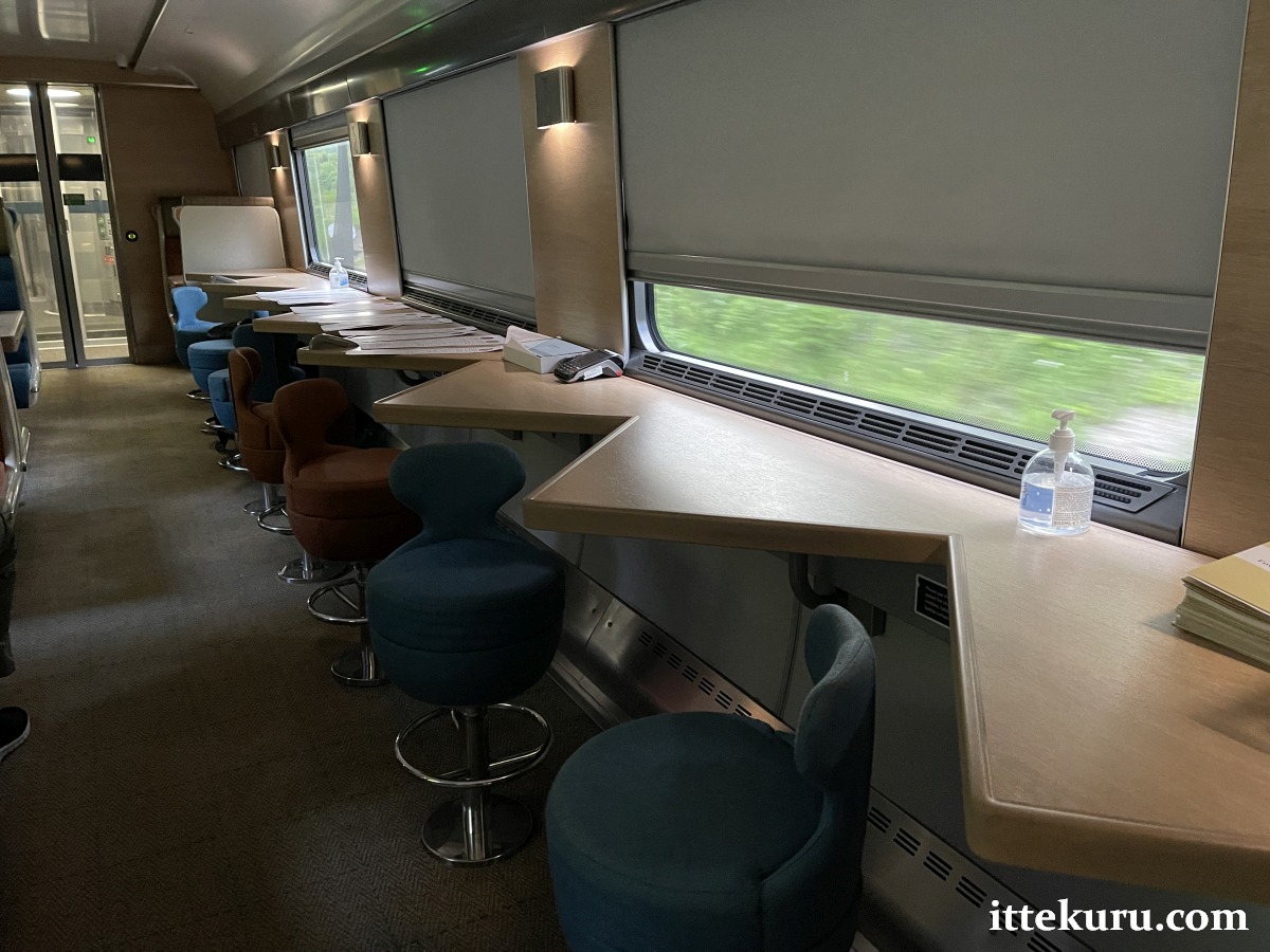 The Club Car – the onboard lounge/restaurant – has no toilet facility of its own.