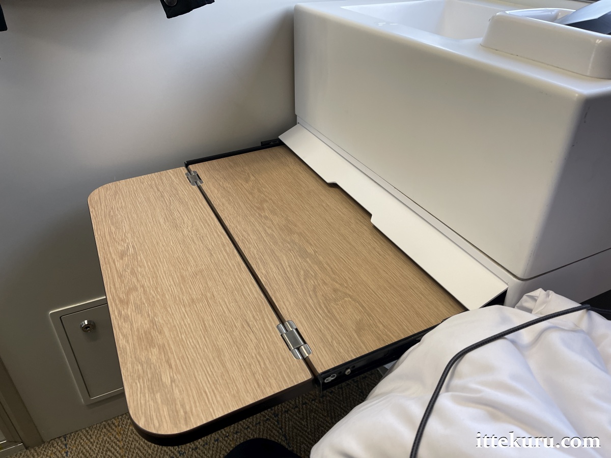 A small folding table can be pulled out from underneath the sink. This should come in useful for those who’d prefer to take meals in their own room instead of the Club Car.