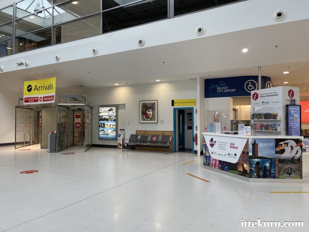 Here, we’ll talk about the landside (public) area of George Best Belfast City Airport (IATA code: BHD) – the smaller of two airports serving the capital of Northern Ireland. For our purposes, “landside” encompasses all of the terminal’s publicly accessible areas before departures security (as opposed to “airside”, which can be accessed only by ticketed passengers).