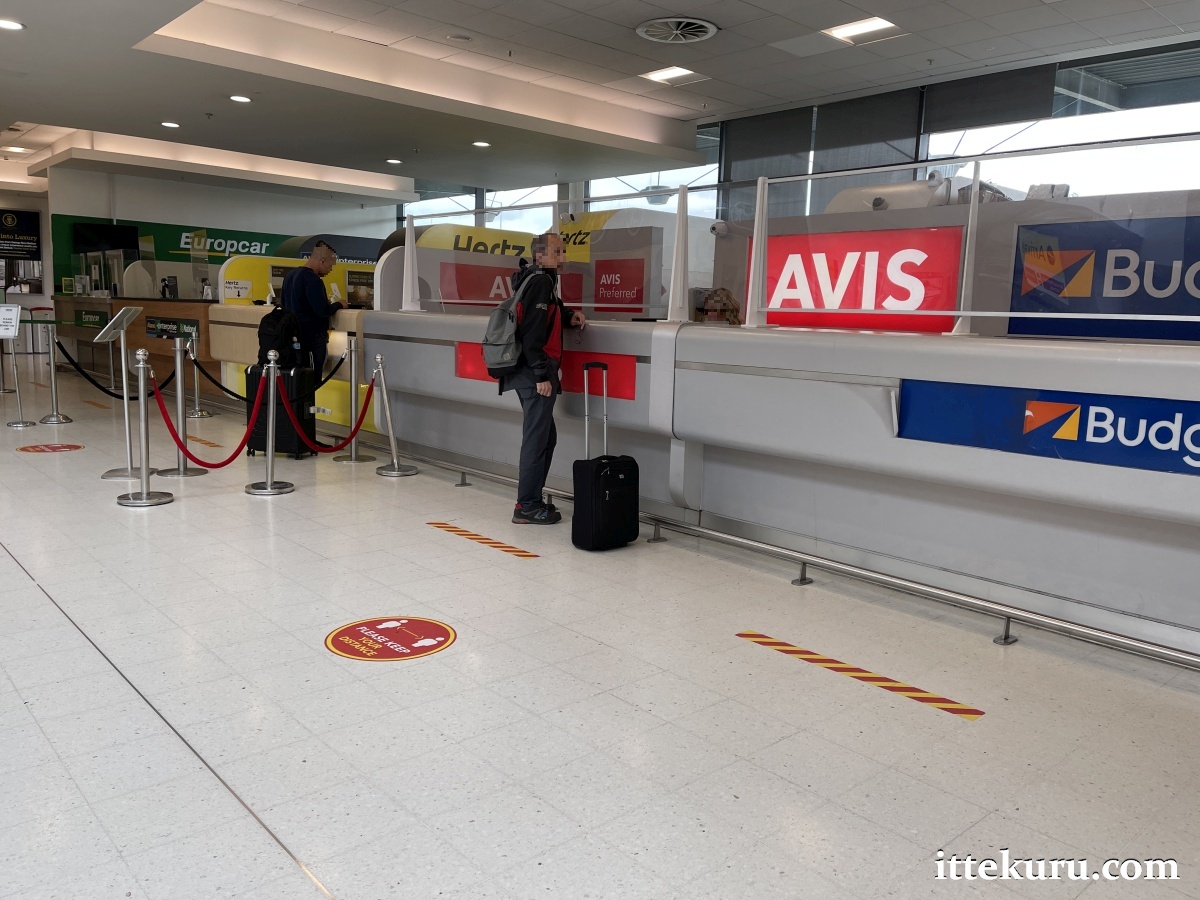 Near the arrivals doors, you’ll find a quiet/prayer room and a tourist information desk. The car rental booths are off to the right of that, arranged in a row against the front windows of the terminal building.
