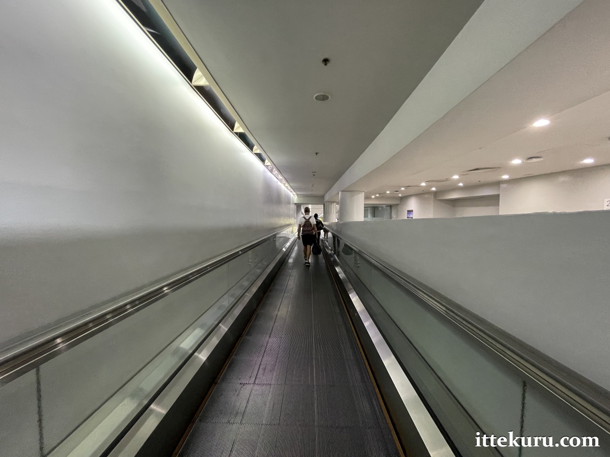 Follow the signs saying “Arrivals” and “Transfers”. If you’re coming from a distant gate or just want an easier slog, you can use the moving walkway that traverses part of the long corridor.