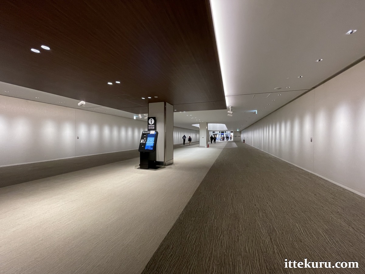Before the pandemic – as shown in my 2019 terminal report – this long walk was made more tolerable, and indeed interesting, by the thoughtfully designed seating area running alongside the passageway. Chairs, recliners, nap cubicles, even a high-tech toilet facility designed by TOTO….