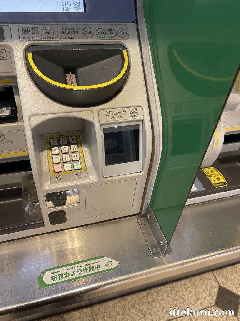 Many – but not all! – ticket machines at JR stations are equipped with QR code readers. These readers are easy to spot as they’re usually fitted near the lower right-hand corner of the machine, with a label that says “QRコード” in Japanese and “QR code” in English (see picture below). This piece of equipment is absolutely essential: you can’t use a JR Pass at a ticket machine that doesn’t have one of these.