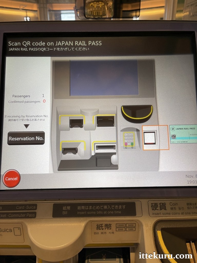 To limit crowding at ticket machines, one person can make all the reservations for their party whilst their companions wait elsewhere. The representative will need to bring all the JR Pass cards (which must be scanned individually) and they’ll also need to know the passport number linked to each one (which must be entered after each QR code is scanned).