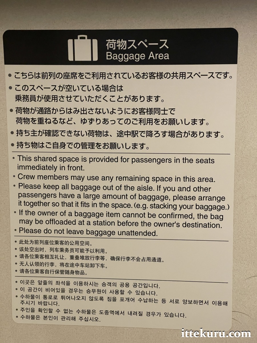 I’ve written a separate step-by-step guide illustrating the process of reserving seats with oversized baggage space on ticket machines.