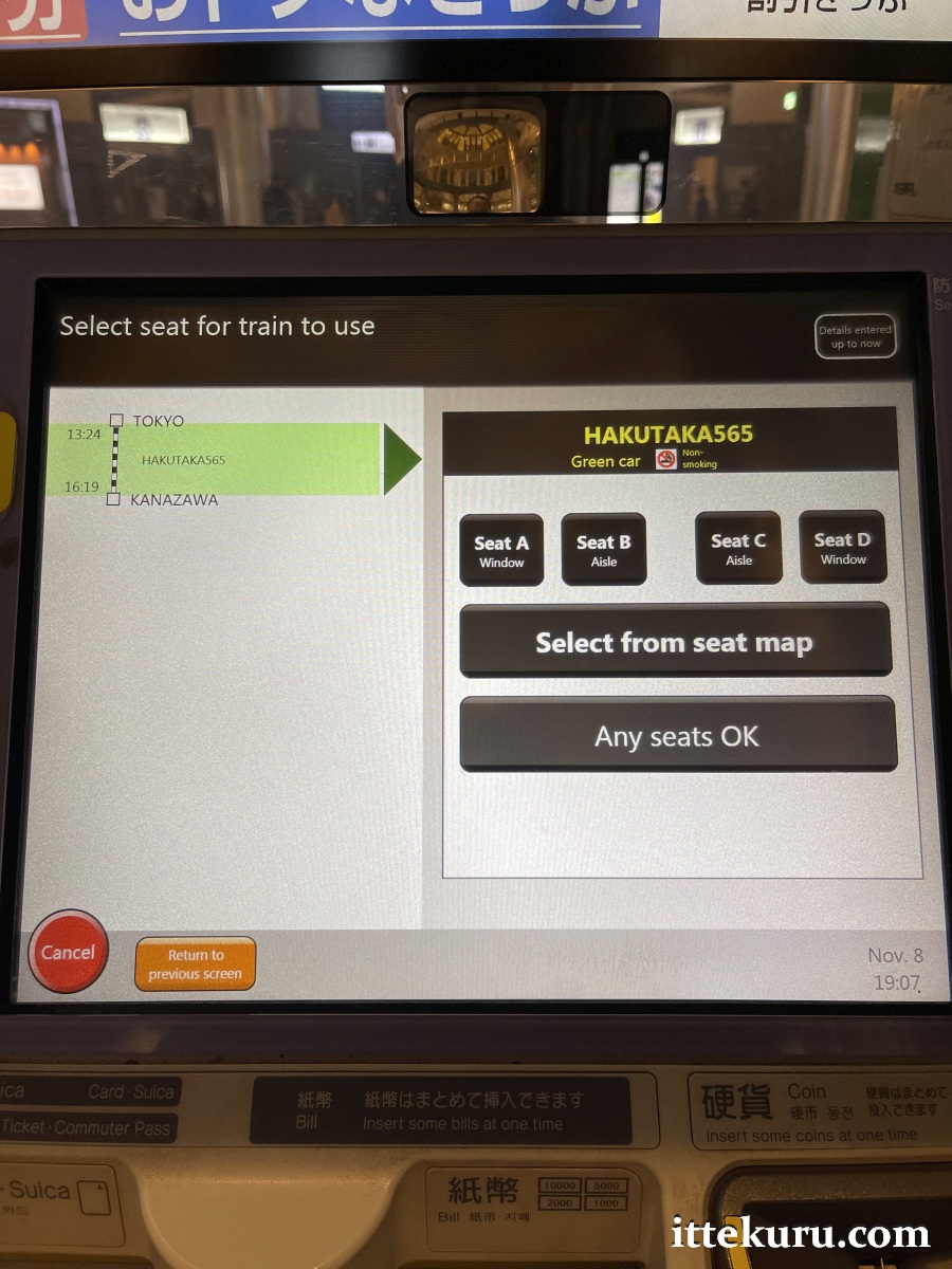 If you’re not travelling with oversized luggage, tap on the “Ordinary seat” button. The process will simply pick up from Step 10 of the ticket machine guide and you can continue on from there.