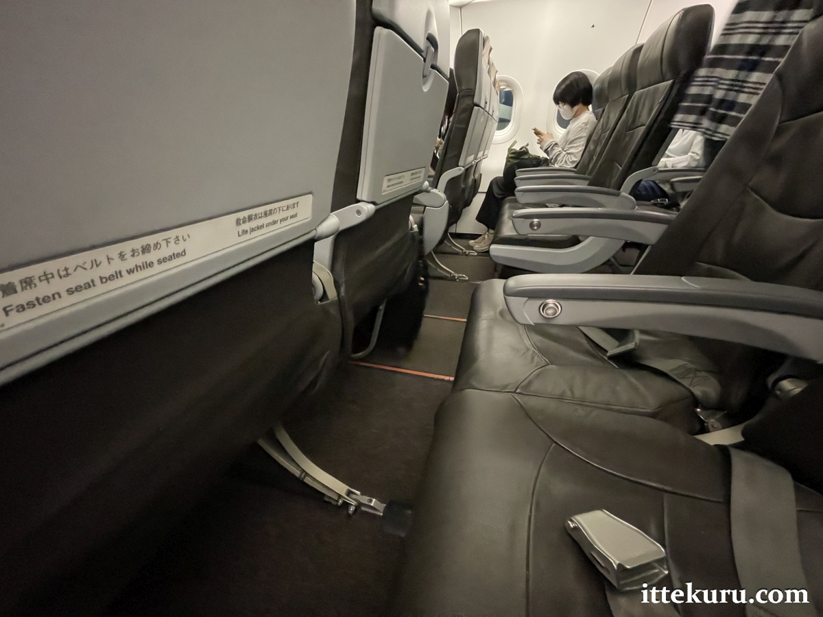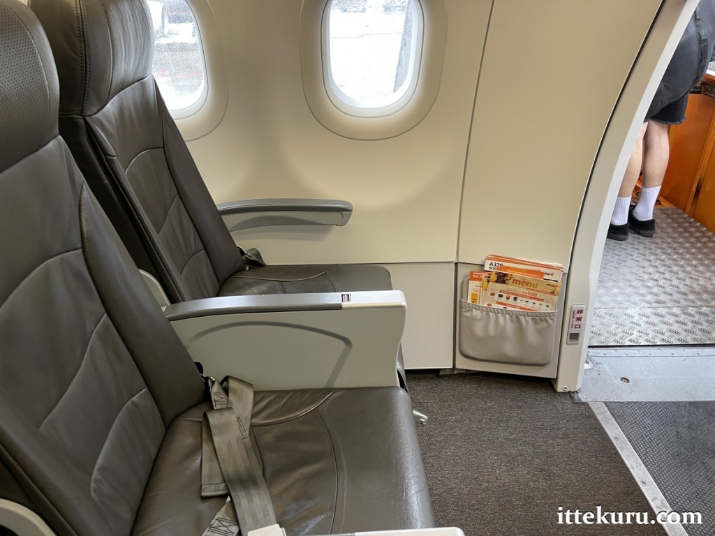 If you’re in need of more wiggle room, you’ll need to pay extra for a seat in the front row (shown below) or the exit row.