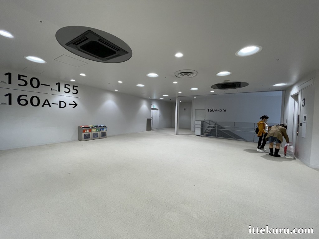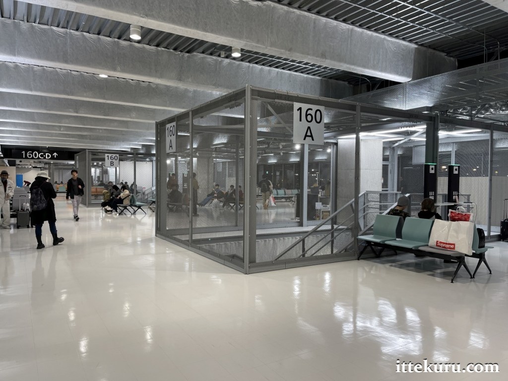 From the general departures concourse at 3F, take a lift or stairs down to the bus gate waiting area on 2F.
