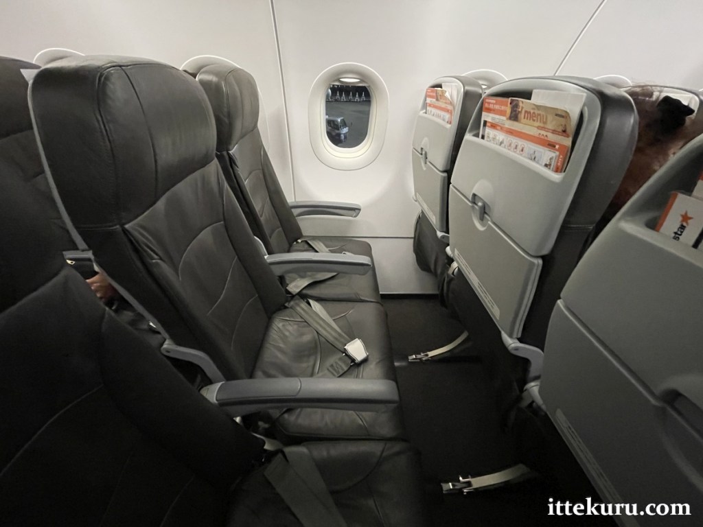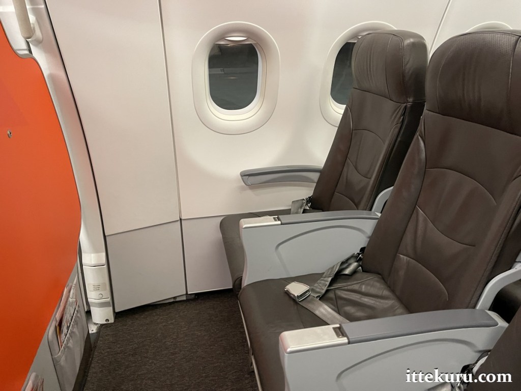 If you’re in need of more wiggle room, you’ll need to pay extra for a seat in the front row (door and bulkhead sides shown below) or the exit row.