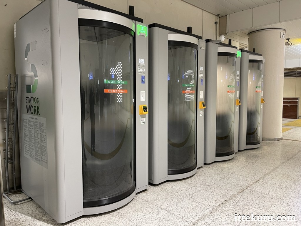 Backstory time. I had a sleeper train to catch from Takamatsu and turned up at the station far too early. I’d already taken dinner and wasn’t in the mood to park at a café. The night air was just a touch too warm for comfort. Desiring to get some blogging done in cosier surroundings, I popped into a STATION BOOTH I’d seen on the mezzanine floor and paid for a half-hour block.