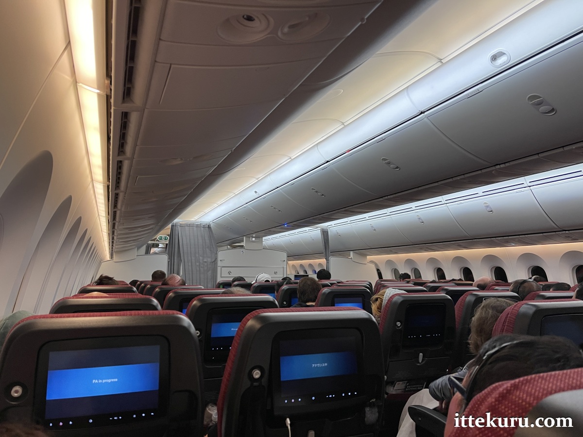 The airline claims that these seats offer up to 84 cm of pitch and 48 cm of width on the 787. I didn’t take precise measurements during the flight, but my seat certainly felt roomier than the equivalent on other airlines – considerably roomier, in fact. I’m also pleased to see that rather than squeeze passengers into its Dreamliners like sardines in a tin, JL’s happy to offer a spacious 2-4-2 configuration per row. Apart from translating into more space per person, this means one is never more than a single seat away from the aisle.