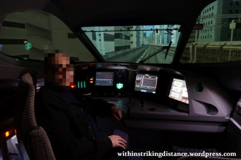 Your camera-shy, train-loving blogger, at the helm of an N700 Series Shinkansen train simulator in Japan. And yes, I value my privacy – hence the pixellated cloud where my head should be.